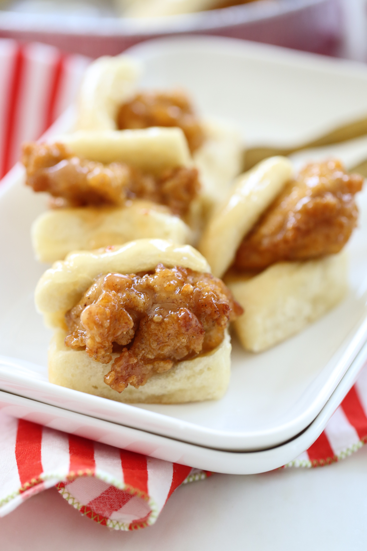 These easy little bite-sized sandwiches are great for snacking, appetizers, or even a fun meal (if you make enough!) They’re similar to a popular favorite at Chick-fil-A that’s served for breakfast. Using a few ready-made ingredients makes these simple to pull off. Generally I avoid sharing recipes that use very brand-specific products, but in this case I feel the specific brands mentioned give the best results that’s closest to the fast-food original! If you come across other brands that work well, please leave a comment and let me know!