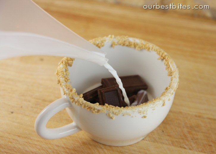 When the marshmallows are done, carefully stir up your hot chocolate. I like to partially stir so I still have some chocolate goo at the bottom to eat. Just like a real s’more.