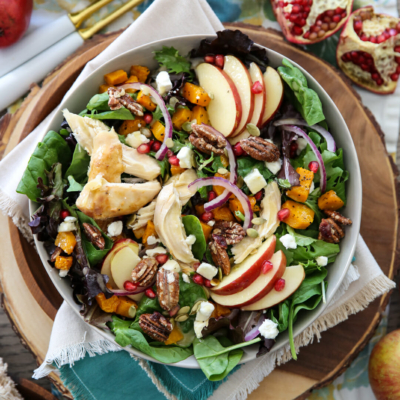 Personally I think this salad looks incredible! My youngest, at 16, however would absolutely HATE it. It cracked me up as the ingredient list reads like a list of things he totally hates! LOL ok he likes chicken. And honestly I LOVE everything in this salad. Now to dig out the sweet potatoes tomorrow. 🙂