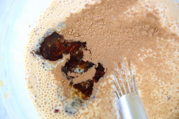 Whisk in a generous dose of vanilla, some dark brown sugar, and some pumpkin pie spice. Also some cinnamon.